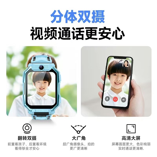 同时,手表配备 1.83 英寸全面屏,搭配专业护眼技术,既能清晰呈现画面,又能减少长时间使用对孩子视力的影响;内置 800mAh 大容量电池,凭借优化的功耗控制实现长续航表现,满足儿童全天在校及户外活动的使用需求。